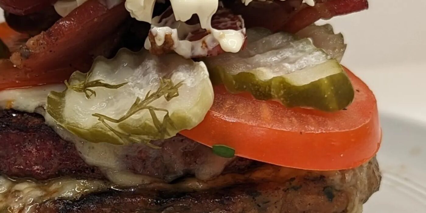 Burgers always hit the spotThis loaded burger was delicious. One @butcher_box beef patty and one @amylufoods patty. Grilled in the Yoder using @bearmountainbbq apple wood pellets. While they grilled down below, I had the bacon up top dripping over the burgers. Lettuce, tomato, @grillospickles pickles and a bit of mayo added some freshness and ghost pepper jack cheese rounded out all the fillings. Sandwiched between @carbonautbaking buns and I was set! #burger #cheeseburger #baconcheeseburger #grilling #hamburger #lowcarb