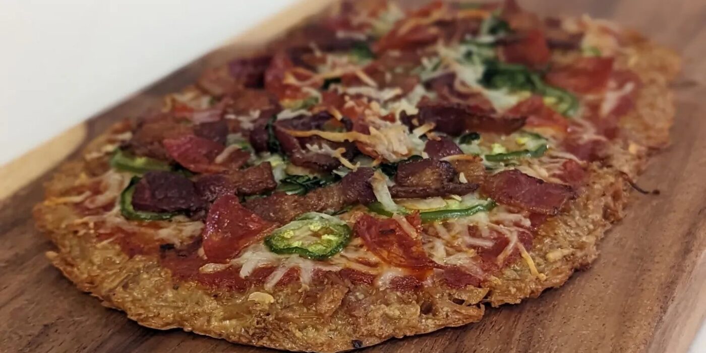 Chicken Crust jalapeno, bacon, pepperoni and Spinach pizzaChicken crust is the absolute best high protein low carb pizza crust (move aside fathead dough). Dry out a can of chicken (Costco cans) in the smoker to add a great smoke flavor and get that chicken nice and dry. Then mix with the chicken 1.5oz Parmesan cheese, 1 tablespoon of almond flour and enough egg to rehydrate the chicken and pull it all together. This crust used two eggs. Form the crust on a parchment lined sheet pressing it nice and thin using a fork. The bake/smoke at 350 for another 15-20 minutes, flip and top with your favorite toppings. I went with @raoshomemade marinara, mozzarella, bacon, jalapeno, spinach and pepperoni. Finished with a little more Parmesan and baked till everything was golden and bubbly. I smoked and cooked this using @bearmountainbbq oak wood for a nice smoke flavor. #chickencrustpizza #lowcarbpizza #fatheaddough #bearmountainbbq #pizzanight