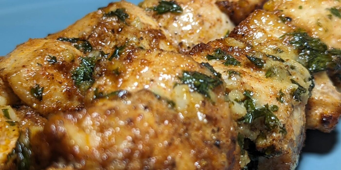 Chicken on a stick! What do you think? Is food better on a stick? This chicken breast is brushed in garlic, Parmesan and butter, and was cooked in the air fryer! My wife lead the charge on this recipe and I lead the eating! #chickenbreast #chickenkabob #chickenskewers #airfryer #healthychicken