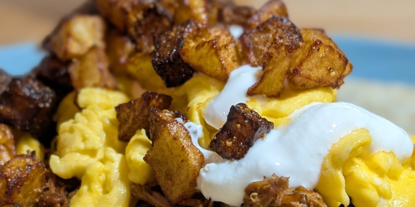 How do you prefer your birria? When you make a big batch of Birria, you get to enjoy it in multiple formats! Quesadilla, breakfast burrito, or a little hash? Which would you pick? The breakfast burrito is golden potatoes, fried and tossed in @spiceology cowboy candy, some scrambled eggs, birria, cheddar cheese and some sour cream. The quesadilla is simply a flour tortilla, with quesadilla cheese and birria, painted in consume and cooked on the flat top. Finally. After the burrito I had a few leftovers that didn't fit in the tortilla, so a little breakfast hash? The rest of the potatoes, eggs, cheese, Birria and some hot sauce#birria