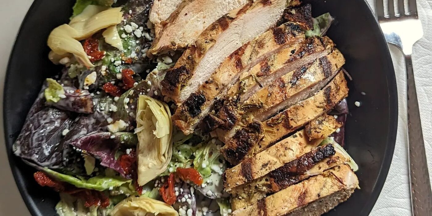 Lemon Herb Chicken SaladThe shining star in this salad is the @brandingironranch lemon herb chicken. Grilled at 350 to an internal temp of 165 using @bearmountainbbq bourbon blend pellets over an open fire. I made this chicken the day before so it could be served cold over the salad.The salad base is a butter lettuce blend tossed in @chosenfoods ranch dressing, a touch of feta cheese and some @spiceology Greek freak seasoning. The salad is then topped with a few sundried tomatoes and marinated artichoke hearts. A salad pro tip: add your favorite seasoning or rub to your salads! You do not need to stick to fresh cracked pepper or no seasoning at all. A little bit of seasoning goes a long way on fresh lettuce! With the chicken prepared in advance this top tier restaurant quality salad comes together very quickly and easily for the perfect lunch. #salad #saladrecipe #salads #grilledchicken #bearmountainbbq #foodphotography #healthyrecipes #eathealthy #lunchideas
