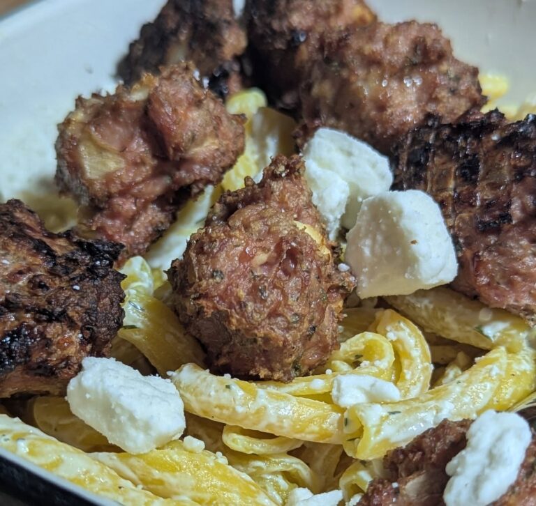 Mediterranean style turkey meatballs over lemon pasta. Smoked the turkey meatballs using @bearmountainbbq cherry wood pellets for a light smoke with bold color impact on the meatballs. The lemon pasta was tossed in tzatziki sauce. With a garnish of some more feta cheese. For a side, artichoke steamed with a shallot and herb seasoning. Everything came together really well. Was absolutely delicious and full of flavor. The smoked meatballs were the star, really elevated by the bright lemon flavor in the pasta. #turkeymeatballs #lemonpasta #artichoke #bearmountainbbq #smokedturkey on August 13, 2025August 13, 2025