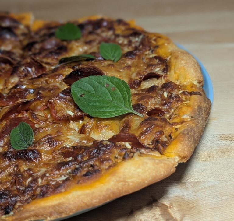 Sourdough discard pizza Pepperoni, mozzarella and fresh blue African basil grown right here in the backyard. I used the @kingarthurbaking discard recipe for the crust but went with a hand kneaded approach instead of using a mixer. I also did a few rounds of stretch and folds. I have historically not used a stone and just baked with a pizza sheet. Today I tried the sheet on the stone and it protected the crust a bit to much, getting a darker cheese and lighter crust cook. Next time we’ll go back to not using a stone. The sauce was Rao’s and seasoned with @spiceology pizza seasoning. on August 14, 2025August 14, 2025 https://instagr.am/p/DNWV52hydaP/