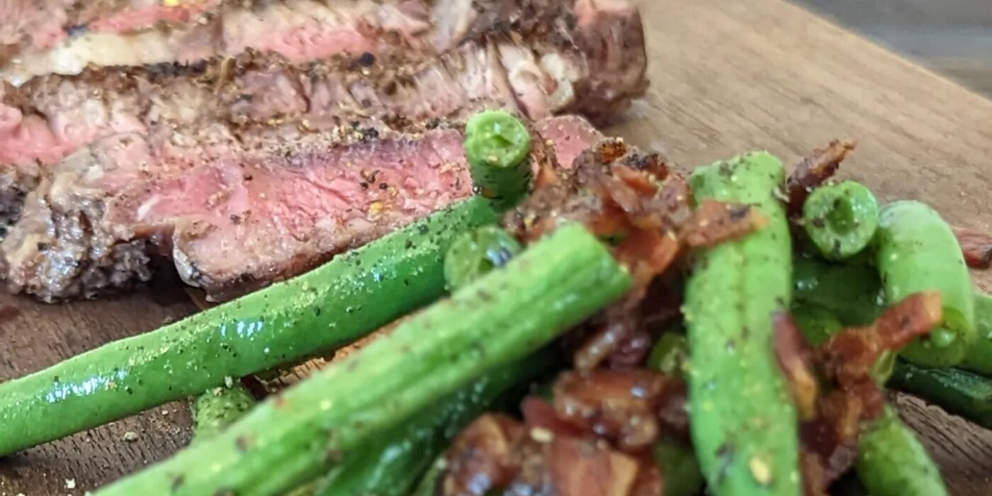 Ribeye with green beans and baconA quick lunch, yes lunch, as a test cook for a photo and video shoot I am excited for over the next week or two. This is a great meal that came together in about 15 minutes (once the grill was preheated). That was a win in itself, but the goal was to understand lighting and I was able to confirm a few layouts that worked and didn't work for me. I'll be excited to do the real cook, may change the protein, may add a sauce for some color, and definitely going to shift to an evening shoot for more controlled light. I want to get the moody feel and haven't don't that style in a while. It's over due. Test cook was a @butcher_box ribeye seasoned with @neilsarap Original beef and fresh cracked pepper using my @hexclad Pepper Grinder. Cooked over direct flame with @bearmountainbbq apple wood pellets. The green beans were cooked in the bacon grease, which is a home cured pepper bacon. Again some fresh pepper. Both the steak and green beans were finished with @spiceologyPink peppercorn and thyme rub. #steak #greenbeans #meatandveggies #keto #lowcarb #healthylunch #grilled #ribeye