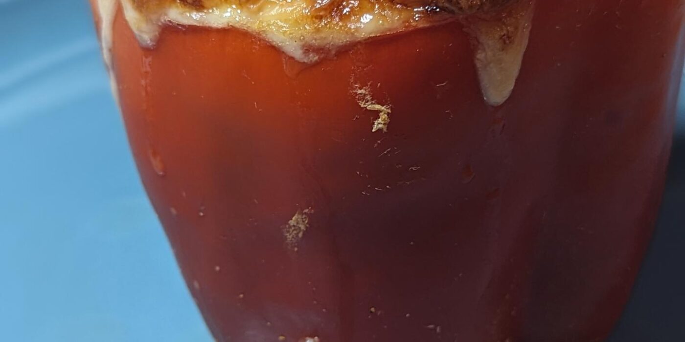 Stuffed PeppersShredded chicken, onions,loads of cheese and @grillospickles pickle de Gallo filled this massive red pepper. Tipped with more cheese and baked till everything came together, the pepper was slightly soft and the cheese on top browned.I topped it with some tzatziki and @bravadospiceSerano basil hot sauce. #stuffedpeppers #chickebdinner #shreddedchicken #bellpeppers #cheese #proteinmeal #dinnerinspo